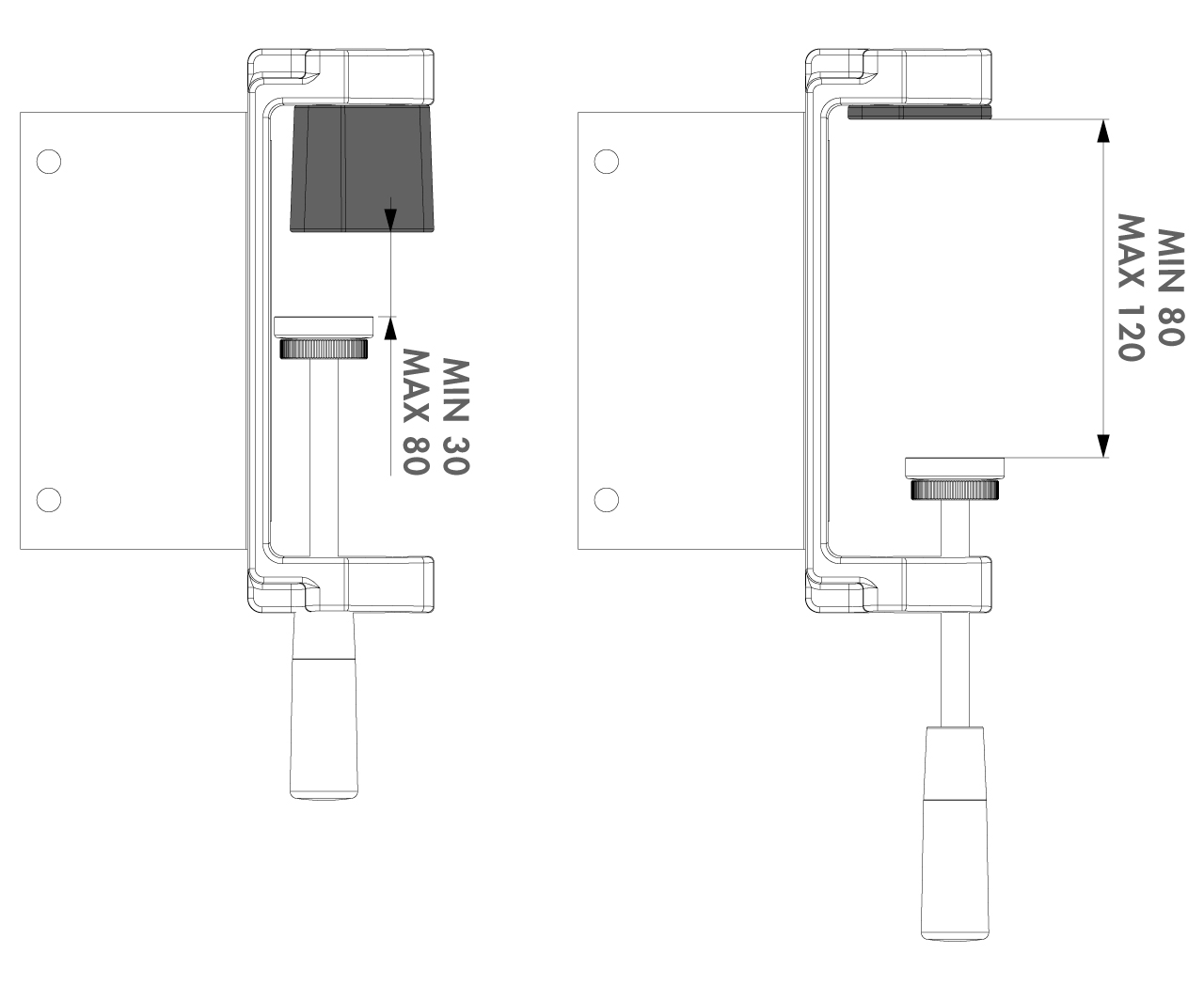 2 special clamps with 30-120 mm adjustability with support plates to position gate frames